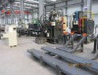 CNC Angle Drilling machineModelJNC2532FunctionsDrilling & markingSize of angles (mm)∠140×140×10∠250×250×32Max. diameter of drilling (mm)40Marking force (KN)1200Max. length of raw angle (m)14 ( by customers request )Adjustment range of stadium (mm)50 220 (stepless adjustment)Drills per side3Groups of marking character1characters15Dimension of character (mm)14×10×19CNC axes3Feeding speed of angle (m/min)40Stroke of drilling spindle (mm)180Speeds of drilling spindle (r/min) 180 560 (stepless adjustment)Overall dimensions (mm)29000×8900×2500Weight (Kg)16500 Use: Ideal CNC equipment specially used for drilling & marking of angles. Technical characteristics: 1. Adopt CNC technology and servo motor infeeding, with high efficiency and stable workpiece precision.2. Key hydraulic, pneumatic and electric parts all imported.3. Easy programming and can directly use the program data generated by lofting software.4. Computer with English interface, easy operation, and can display the drawing of workpiece.Advantages: 1.The speeds and feeding speeds of all drilling spindles are steplessadjustment realized by frequency converter & flow control valve.Rapid feeding, workfeeding and rapid back of drilling spindles can be automatically converted.2. Marking stadia can be preset conveniently.3. Cooling system with automatic circling is adopted to prolong the lifetime of drills.4. Only need operator to input the dimensions of workpiece, the machining program can be generated.5. Conveniently store, call up, display and communicate according to the code of workpeice. With CAD/CAM easy conversion.6. With self-diagnosis failures function.